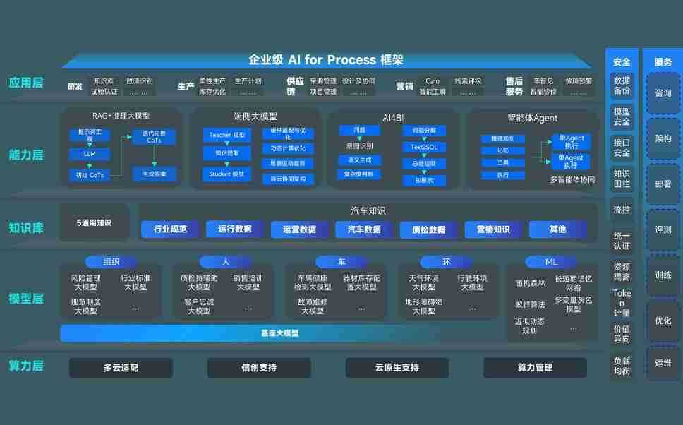 端到端的一站式AI工作空间深度融合了从企业战略规划到日常经营的全流程业务板块,,定向解决车企内部领域多、、、部门多、、、、链条长、、场景碎片化等难题,,,,支持车企快速构建以AI为核心的生产力写作体系,,实现任务执行与AI能力的无缝集成与交互